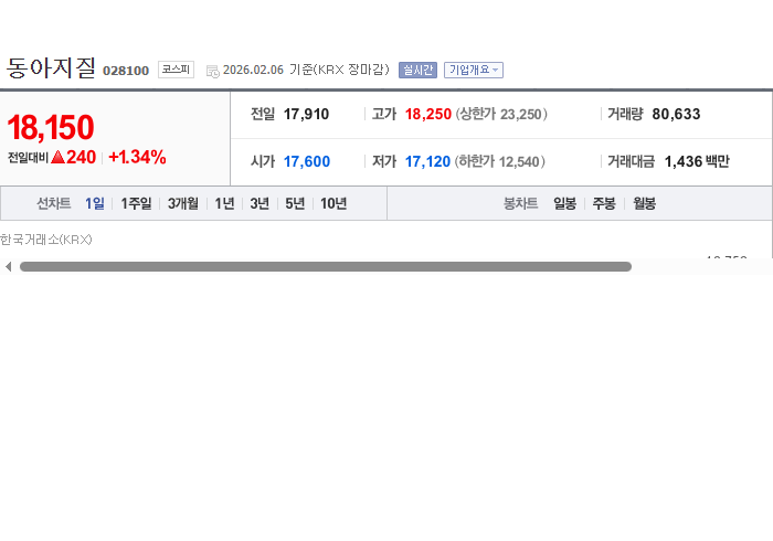 동아지질 주식의 재무 상태